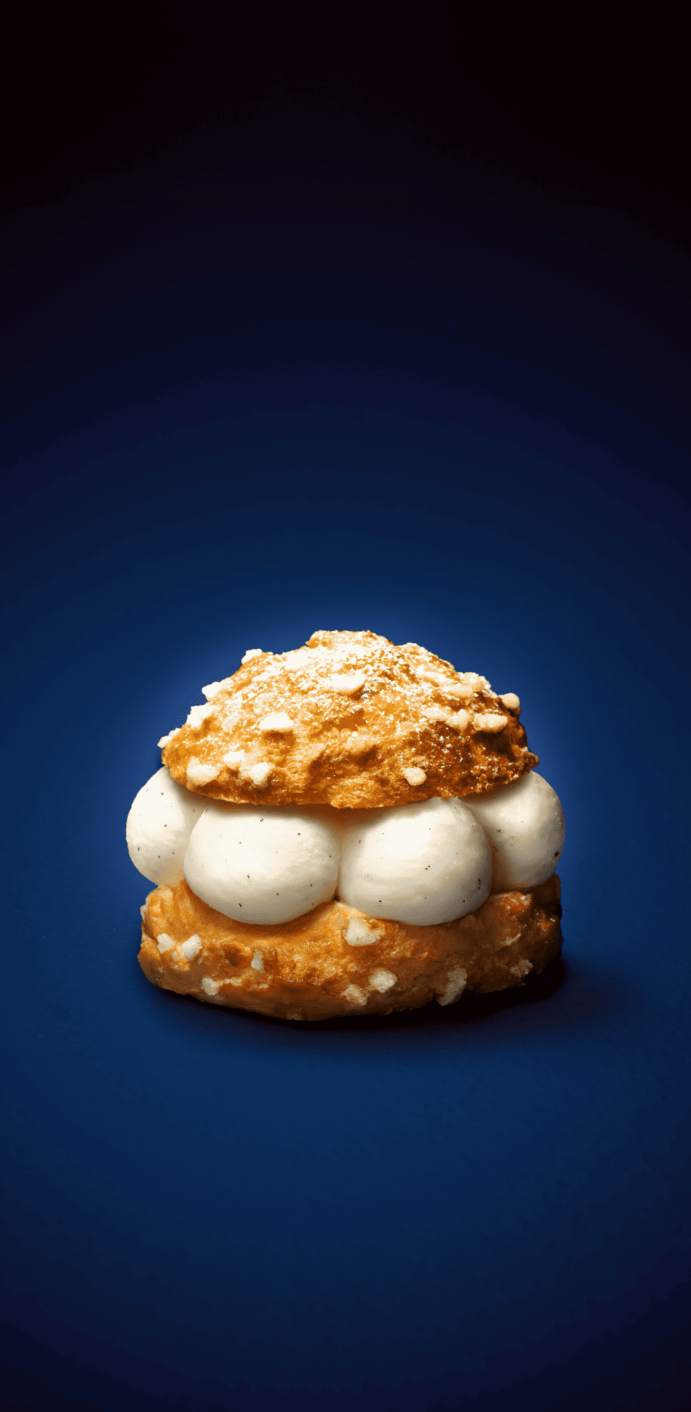 Faire chauffer l’eau, le lait, le beurre, le sel et le sucre. À ébullition, ajouter la farine hors du feu, mélanger puis faire refroidir au batteur muni d’une feuille. A 32°C incorporer les œufs tempérés (20°C) progressivement. Utiliser la pâte à choux à 26°C.